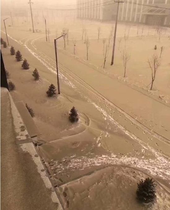 近日,新疆多地出現風雪,降溫,沙塵天氣,其中烏魯木齊、昌吉、石河子等地還降下“黃雪”,堆積在地面的“黃雪”,表面一層摻雜著淺咖色的沙塵,內里是白色的雪。這一景象被網友戲稱為好多“提拉米蘇”呀。據了解,出現這種情況,和大氣污染等因素分不開。因此,我們要加大對環保問題的重視,避免出現以上天氣問題。